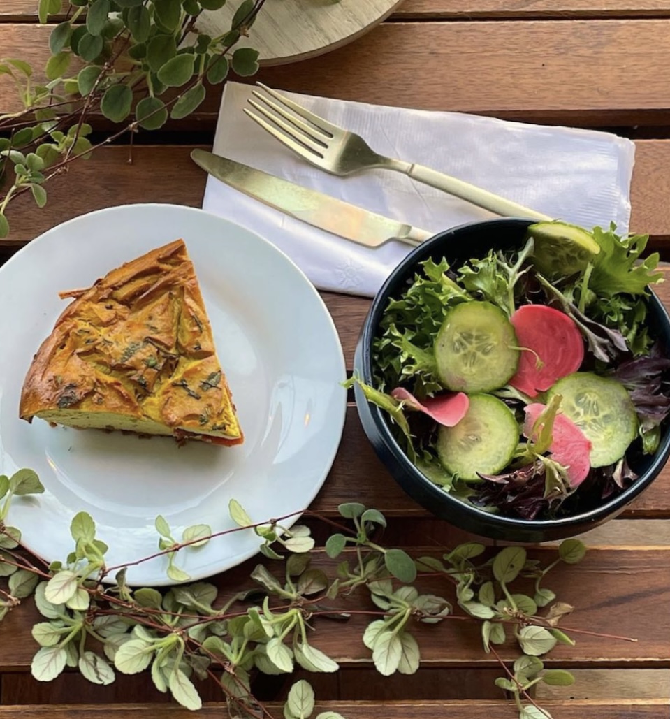 Our selection changes almost daily, but you can almost always expect savory items like our Breakfast Sandwich using ‘Just Egg’ breakfast patties, Wraps, Breakfast Burritos, NY Bagels with Cashew Cream Cheese and Carrot Lox, Croissants, Wraps, our Beet Confit Reuben and ever changing Seasonal Dishes